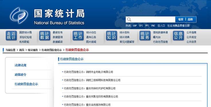 國家統(tǒng)計(jì)局行政處罰信息公示專欄