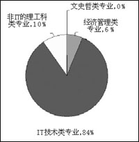 被調(diào)查者中,67%的人表示不準(zhǔn)備再繼續(xù)求學(xué)。有33%的人有繼續(xù)深造的打算,這部分人有60%打算繼續(xù)學(xué)習(xí)IT技術(shù)類專業(yè),有30%的人打算學(xué)習(xí)經(jīng)濟管理類專業(yè)。有趣的是,還有3%的人想要學(xué)習(xí)文史哲專業(yè),其中想要學(xué)習(xí)外語的占了多數(shù)。
