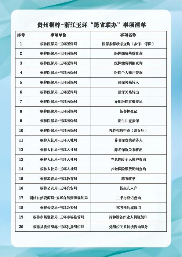需辦理以上事項的群眾及企業(yè)可到政務(wù)服務(wù)大廳“跨省聯(lián)辦”窗口咨詢辦理