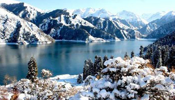 2008年5月2日,新疆天山天池風(fēng)景區(qū)游人如織。 5月1日晚,新疆天山天池風(fēng)景區(qū)出現(xiàn)降雪,雪后的天池景區(qū)內(nèi)白雪、蒼松與高山湖泊相映襯,顯得格外動(dòng)人,吸引眾多游客。 新華社記者王菲攝