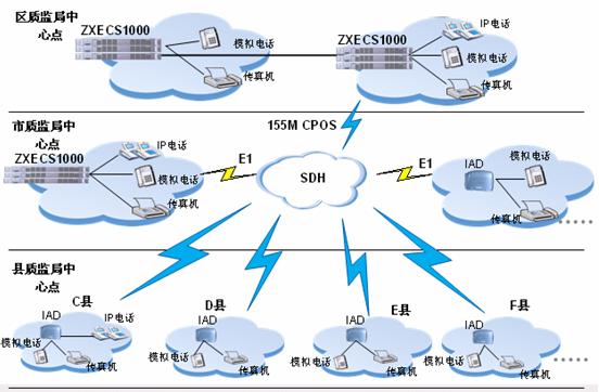 其它各接入節(jié)點(diǎn)采用IAD設(shè)備接入到ZXECS 1000,最大程度的降低了語音接入的成本,同時IAD靈活的擴(kuò)展性利于今后的升級。