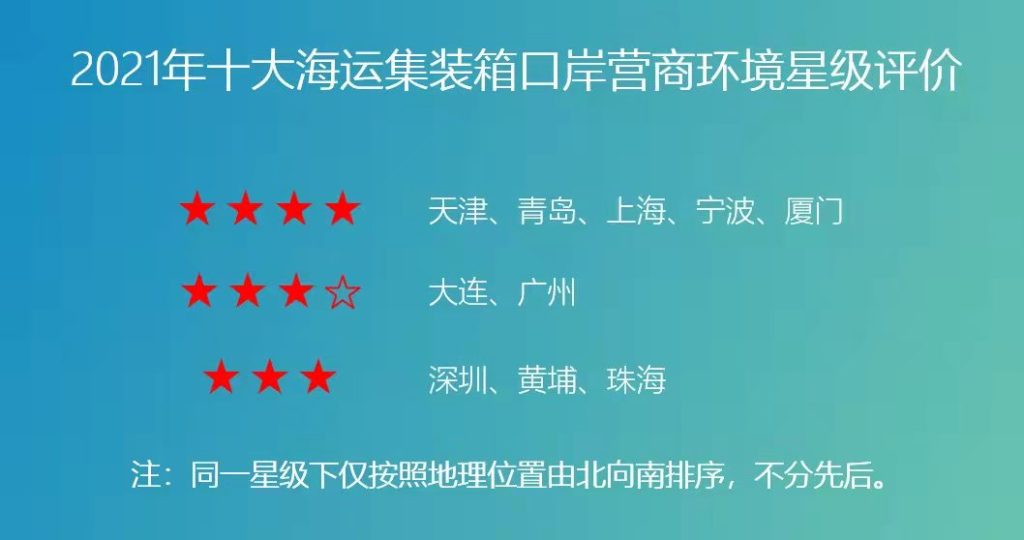 半島全媒體記者在“2021年中國(guó)十大海運(yùn)集裝箱口岸營(yíng)商環(huán)境星級(jí)評(píng)價(jià)”結(jié)果中看到,青島、天津、上海、寧波、廈門5個(gè)口岸成績(jī)優(yōu)異,并列位于“第一梯隊(duì)”,榮獲四星級(jí)“最優(yōu)等次”。