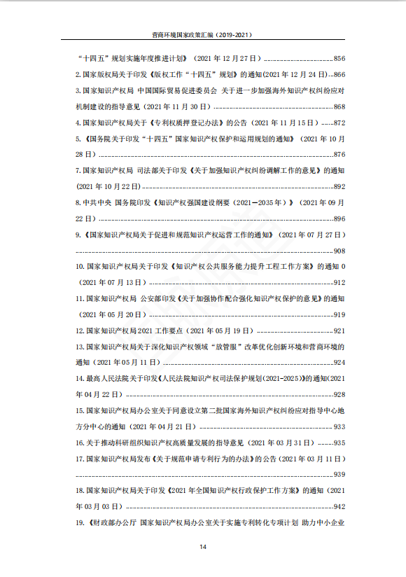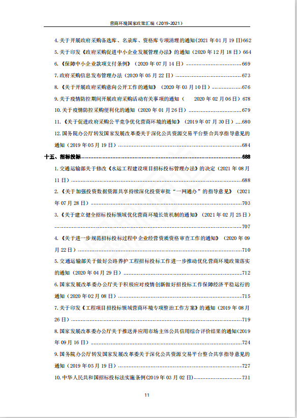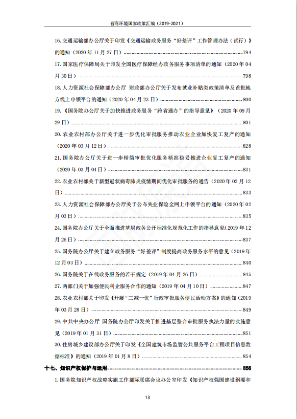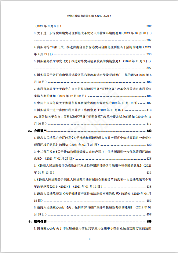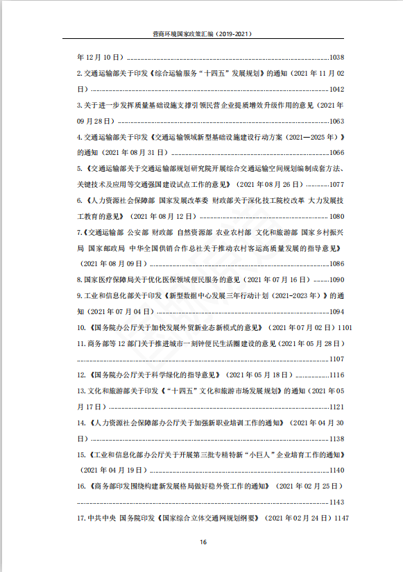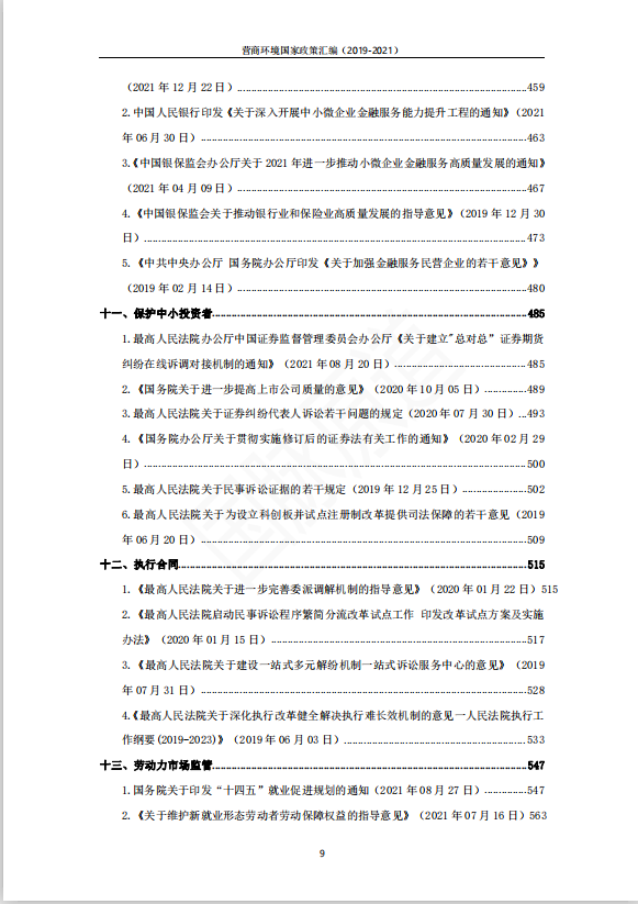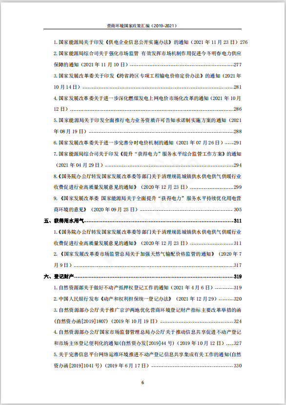 近年來,黨中央、國務院圍繞市場主體需求,以深化“放管服”為主要抓手,出臺了一系列政策文件,指引我國營商環(huán)境優(yōu)化工作的有序、有力開展。湖南國脈原道數(shù)據(jù)科技有限公司對國家層面2019年-2021年出臺的營商環(huán)境相關(guān)的政策文件、標準規(guī)范等進行了匯編,按照國家發(fā)改委營商環(huán)境評價的18大指標進行了分類整理,共計200余個文件。該匯編將持續(xù)性更新,是各地各部門優(yōu)化營商環(huán)境工作開展的重要參考。