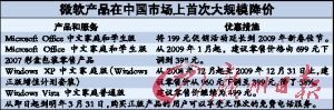 據(jù)悉,這是微軟在中國(guó)市場(chǎng)上首次大規(guī)模降價(jià)促銷(具體措施見上表)。