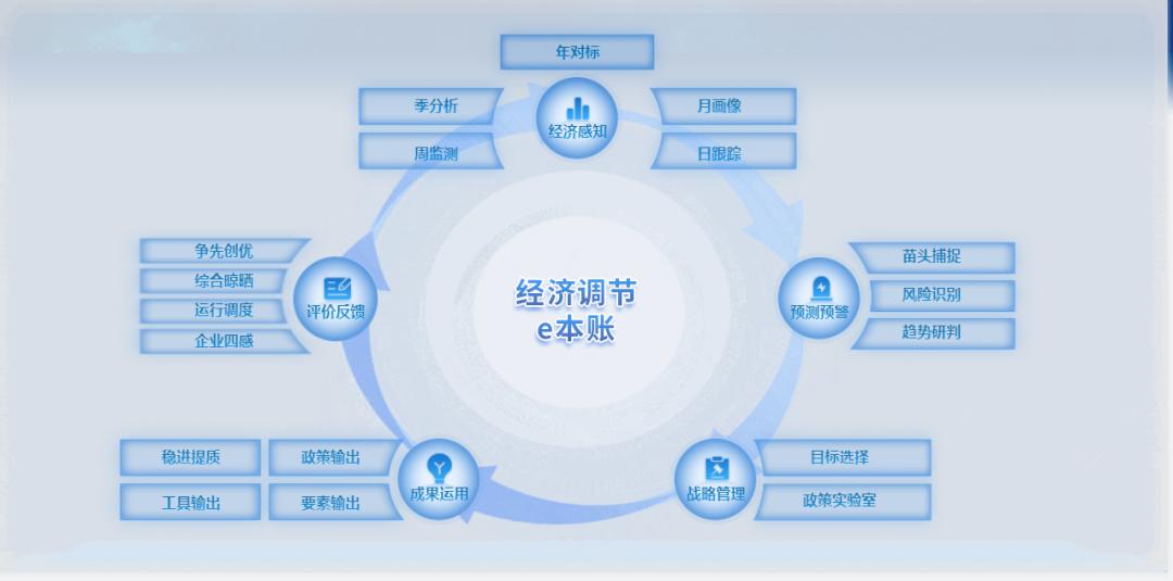從“單一鏈條”向“閉環(huán)管控”轉(zhuǎn)變。推動(dòng)從原先單一的“經(jīng)濟(jì)監(jiān)測(cè)”,升級(jí)延展形成“經(jīng)濟(jì)感知—預(yù)測(cè)預(yù)警—戰(zhàn)略管理—成果運(yùn)用—評(píng)價(jià)反饋”的全場(chǎng)景鏈條,將經(jīng)濟(jì)調(diào)節(jié)的觸角由宏觀延伸至中觀、微觀,將提升戰(zhàn)略目標(biāo)的確定和選擇能力作為經(jīng)濟(jì)穩(wěn)進(jìn)提質(zhì)的重要方面,將執(zhí)行反饋?zhàn)鳛橥苿?dòng)經(jīng)濟(jì)調(diào)節(jié)工作落實(shí)的具體支撐,實(shí)現(xiàn)經(jīng)濟(jì)調(diào)節(jié)的全閉環(huán)管理、系統(tǒng)性重塑。