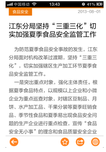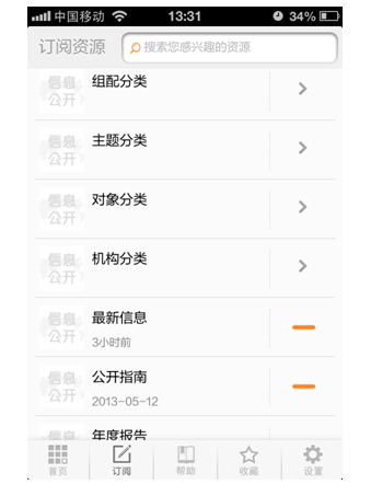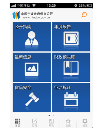 公眾通過應(yīng)用平臺下載政府信息公開客戶端,即可快速進(jìn)行訪問,無需登陸政府門戶網(wǎng)站,操作簡便,界面友好,通過移動設(shè)備觸摸屏,獲得最佳的用戶體驗,符合現(xiàn)代瀏覽習(xí)慣。