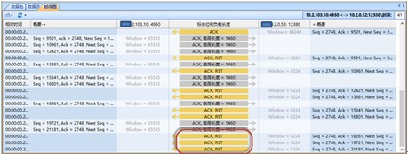 通過查看科來網(wǎng)絡(luò)回溯分析系統(tǒng)的交易時序圖,可以發(fā)現(xiàn)復(fù)位數(shù)據(jù)包的TTL(生存時間)值是127。而正常時傳輸?shù)臄?shù)據(jù),可以看到TTL(生存時間)值為61,和異常時明顯不同,說明復(fù)位數(shù)據(jù)包并不是從10。2。103。10發(fā)出來的,而是有個中間設(shè)備發(fā)送了復(fù)位數(shù)據(jù)包中斷了正常的應(yīng)用會話。