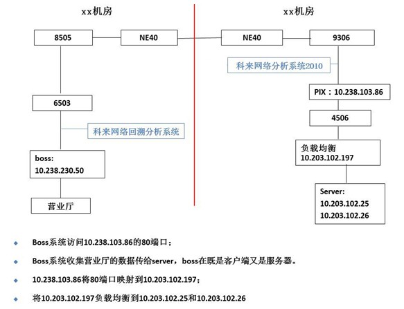 服務(wù)端沒有收到boss系統(tǒng)的請(qǐng)求包,是不是因?yàn)榘粊G棄了?從拓?fù)渖峡?,?shù)據(jù)經(jīng)過的都是路由、交換設(shè)備,該數(shù)據(jù)包并未到達(dá)防火墻,且該鏈路上的其它應(yīng)用一切正常,網(wǎng)絡(luò)丟包沒有說服力。