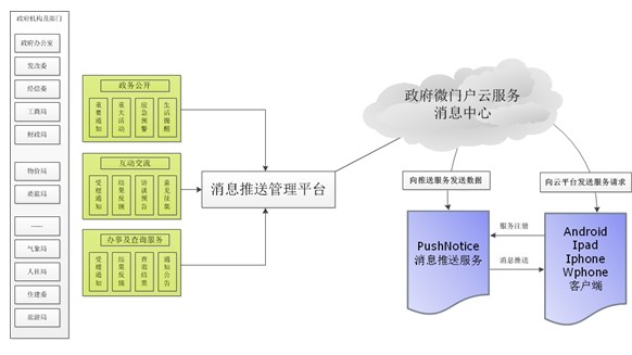 消息中心是政府移動互聯(lián)網(wǎng)服務的一種創(chuàng)新應用。消息中心的建立讓政府服務從過去公布在網(wǎng)站上等待用戶訪問,變成了一種主動的服務模式。