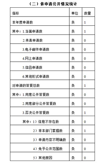 2013年,省統(tǒng)計(jì)局受理政府信息公開申請(qǐng)1件,答復(fù)1件。