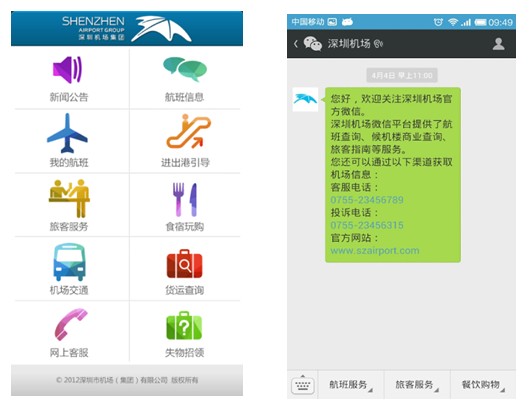 除移動(dòng)APP外,深圳機(jī)場(chǎng)同步推出了“微信公眾服務(wù)平臺(tái)”,方便廣大旅客及時(shí)了解航班信息、地面交通、餐飲購(gòu)物資訊等,讓旅客獲得輕松愉悅的服務(wù)體驗(yàn)。