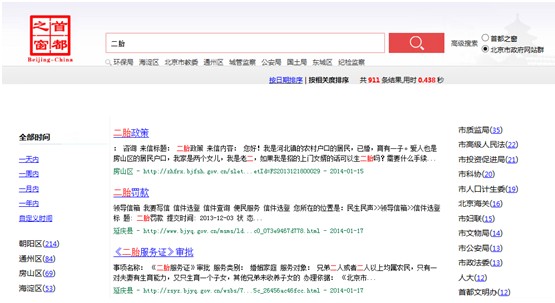 家住回龍觀的IT白領(lǐng)劉先生,最近正在為生二孩的計(jì)劃加緊準(zhǔn)備,但是到了申請二孩指標(biāo)的時(shí)候,為了申請各種表格手續(xù)的事犯了難。他不知道該去哪去申請手續(xù),該填那些表格。不過,這種百姓的辦事難題,在北京市政府“首都之窗網(wǎng)站群云搜索門戶”(http://so.beijing.gov.cn)開通之后,這些難題便迎刃而解了。