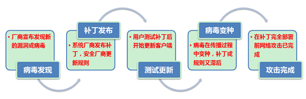 系統(tǒng)補(bǔ)丁或病毒庫通常都會落后于病毒產(chǎn)生的時間,且補(bǔ)丁或庫文件在通過網(wǎng)絡(luò)更新的時候也存在感染的風(fēng)險,現(xiàn)在病毒的變種速度又非???,而且會采用相應(yīng)的新技術(shù),如免殺技術(shù)、禁止殺軟運(yùn)行、內(nèi)核驅(qū)動等??蓚鹘y(tǒng)的技術(shù)手段已經(jīng)落后于當(dāng)前病毒、惡意代碼的技術(shù),且傳統(tǒng)手段對未知的蠕蟲病毒毫無辦法,經(jīng)過實(shí)踐發(fā)現(xiàn),通過網(wǎng)絡(luò)行為分析手段則可以有效的發(fā)現(xiàn)未知蠕蟲病毒、惡意代碼等異常行為。