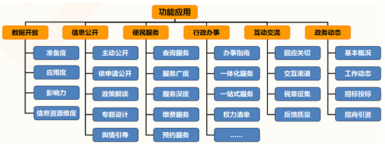 功能應(yīng)用是政府網(wǎng)站發(fā)展建設(shè)的目的,是盤(pán)活政府網(wǎng)站信息資源,優(yōu)化政府網(wǎng)站組織架構(gòu),提升政府網(wǎng)站用戶體驗(yàn)的重要,包括信息公開(kāi)、數(shù)據(jù)開(kāi)放、辦事服務(wù)、互動(dòng)交流、政務(wù)動(dòng)態(tài)5個(gè)要素。
