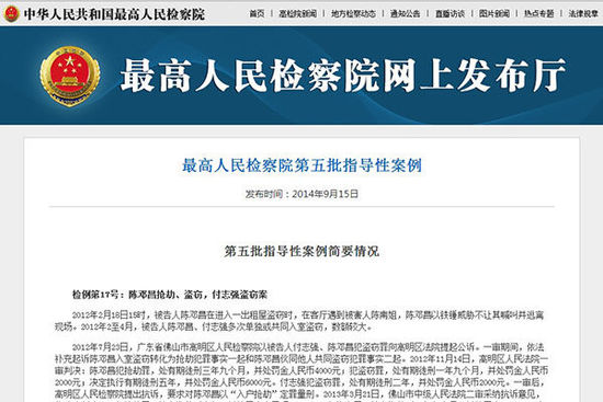 9月15日,最高人民檢察院網(wǎng)上發(fā)布廳公布第五批指導(dǎo)性案例,3起均為刑事抗訴指導(dǎo)性案例。據(jù)悉,這是最高檢首次啟用網(wǎng)上發(fā)布廳,日后將通過該平臺適時(shí)發(fā)布有關(guān)內(nèi)容。