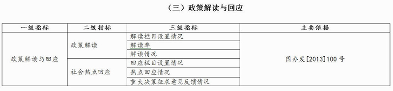 政策解讀的評(píng)估內(nèi)容包括解讀欄目設(shè)置情況、解讀比率、具體解讀情況。