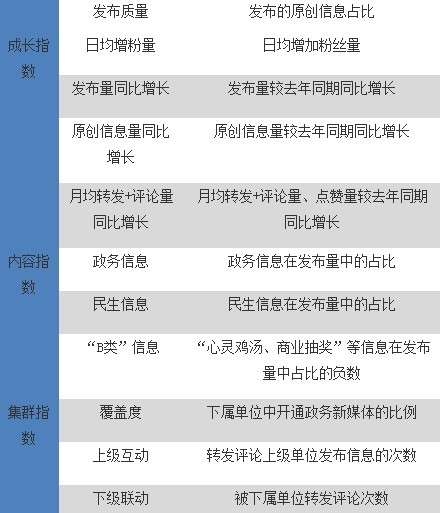評估對象為在微博、微信平臺通過認(rèn)證的中央國家機(jī)關(guān),各省、自治區(qū)、直轄市,省直機(jī)關(guān),副省級城市、地級市,市屬機(jī)關(guān),市轄區(qū)、縣、縣級市政務(wù)新媒體賬號。