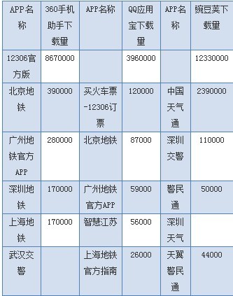 從三大平臺排行前十的APP來看,穩(wěn)居各大平臺政務(wù)APP下載量榜首。熱門政務(wù)APP大致可分如下幾類:一是交通類,包括火車、飛機(jī)、地鐵等;二是公安類,尤為突出的是各地的交警;三是天氣類,由氣象局推出的應(yīng)用成為不少人的必備軟件。