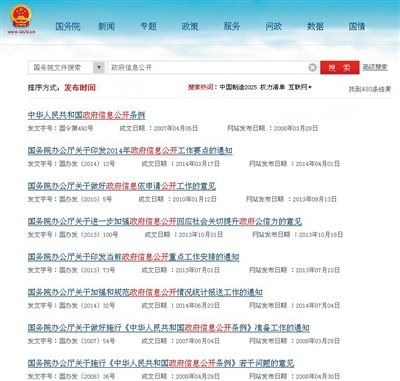 中華人民共和國中央人民政府網(wǎng)站上顯示的有關(guān)政府信息公開的文件。