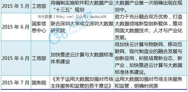 值得注意的是,近期國務院出臺文件對各個部委推進大數(shù)據(jù)任務制定了明確的時間表,很多推進工作任務要求在 2015 年 12 月底前出臺政策并實施,近期將是我國大數(shù)據(jù)發(fā)展政策出臺的密集期。