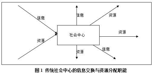 所謂中心型,就是指傳統(tǒng)社會中,始終存在一個統(tǒng)一的社會中心,這一統(tǒng)一的社會中心起到了收集信息、分配資源、管理社會運作等職能。而在一個國家范圍內(nèi),只有一個中心來控制整個國家社會的運作。并且通過法律等手段來強化這一中心的法定權(quán)力。在傳統(tǒng)社會中,這一中心就是政府。