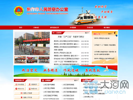 2015年9月10日,焦作人防辦新版網(wǎng)站如期上線。此次改版在頁面設(shè)計(jì)方面采用更為清晰合理的結(jié)構(gòu)布局和更適合人防形象的配色方案,整體視覺效果煥然一新。