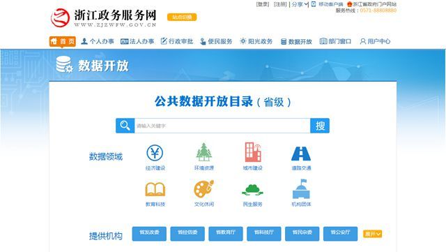 浙江政務(wù)服務(wù)網(wǎng)“數(shù)據(jù)開放”專題網(wǎng)站截圖