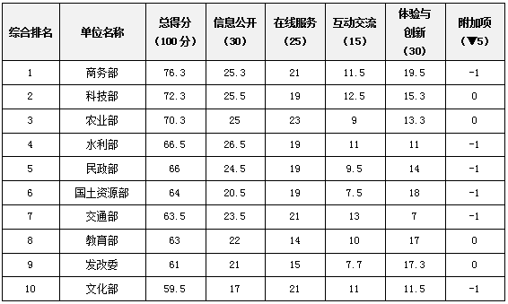2015中國部委政府網(wǎng)站績效評(píng)估前10名發(fā)布如下: