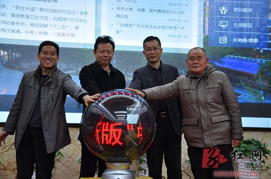 1月21日上午,在智慧常德協(xié)調(diào)指揮中心,市政府常務(wù)副秘書長李長春、市電子政務(wù)辦主任唐西新、南京大漢網(wǎng)絡(luò)有限公司董事長金震宇與常德論壇知名網(wǎng)友“西嶺雪”共同開啟新版常德政府門戶網(wǎng)站。