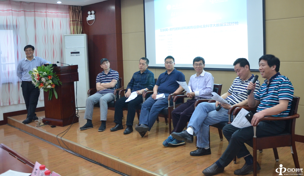 演講環(huán)節(jié)結束之后,進入本次活動的對話環(huán)節(jié),本次對話環(huán)節(jié)主題為:互聯(lián)網+時代的科研和教育信息化及科學大數(shù)據(jù)實踐經驗。本次對話環(huán)節(jié)由中科院條財局信息化工作處處長、北大CIO同學會教育科研分會會長陳明奇主持,參與本次對話的嘉賓有:中南民族大學網絡技術中心副主任張淼、中科院海洋所支撐中心主任劉長華、中科院高能所信息中心副主任齊法制、華中師范大學信息化辦公室主任、北大CIO同學會教育科研行業(yè)分會秘書長李鴻飛、華中農業(yè)大學現(xiàn)代教育技術中心主任明庭慶、武漢植物園信息中心主任楊中清。各位嘉賓分別從自己所在單位的信息化及教育科研大數(shù)據(jù)應用的實踐出發(fā),分析現(xiàn)狀及面臨的各種挑戰(zhàn),分析信息化建設成功經驗。精彩的研討,干貨不斷。