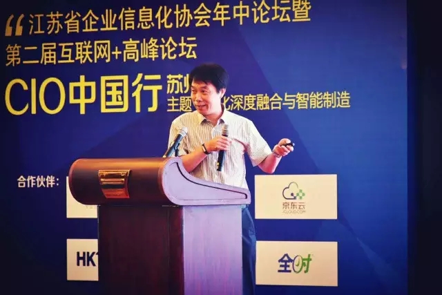 江蘇省經(jīng)信委副巡視員、江蘇省企業(yè)信息化協(xié)會(huì)會(huì)長(zhǎng)閆浩為本次活動(dòng)致辭,他首先歡迎各位領(lǐng)導(dǎo)嘉賓和CIO們的到來(lái)。中國(guó)是世界制造業(yè)大國(guó),但還缺乏核心技術(shù)、品牌產(chǎn)品和核心的話語(yǔ)權(quán),出路只能是通過(guò)工業(yè)化和信息化的結(jié)合,通過(guò)制造業(yè)和互聯(lián)網(wǎng)的融合來(lái)實(shí)現(xiàn)智能制造的目標(biāo),江蘇在這方面也做了一些探索和嘗試。他提到專家學(xué)者既有深厚的理論素養(yǎng),又有非常豐富的實(shí)戰(zhàn)經(jīng)驗(yàn),希望大家通過(guò)他們的演講能夠開(kāi)拓視野,并預(yù)祝此次論壇圓滿成功。