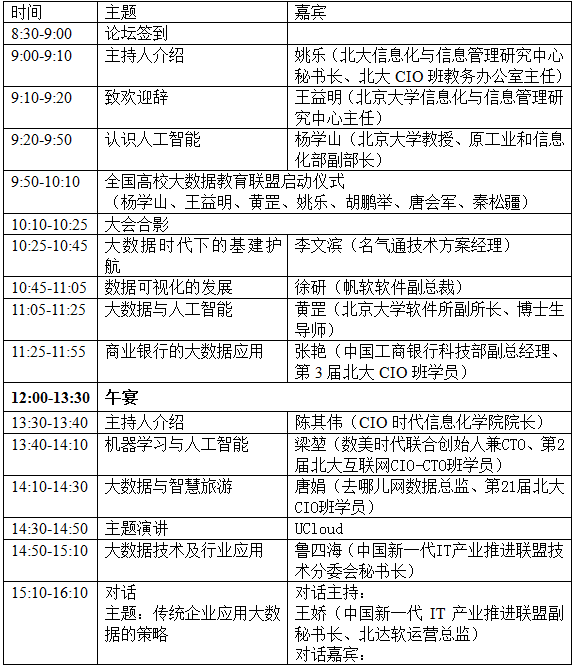 以“大數(shù)據(jù)與人工智能”為主題的第五屆中國大數(shù)據(jù)應(yīng)用論壇將于2016年7月17日在北京大學(xué)隆重舉辦。本次論壇由北京大學(xué)信息化與信息管理研究中心指導(dǎo)、CIO時代網(wǎng)和中國新一代IT產(chǎn)業(yè)推進(jìn)聯(lián)盟聯(lián)合主辦,數(shù)美時代和北達(dá)軟協(xié)辦。