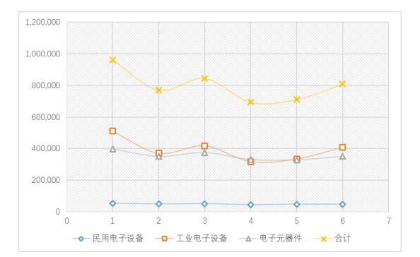 圖2 2016年1-6月日本電子信息產(chǎn)品進(jìn)口額(單位:百萬(wàn)日元)