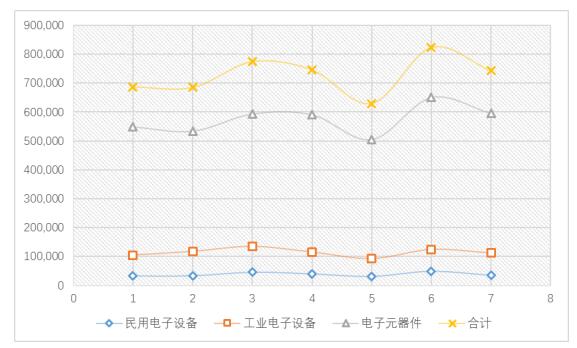 圖1 2016年1-7月電子信息產(chǎn)業(yè)產(chǎn)值(單位:百萬(wàn)日元)