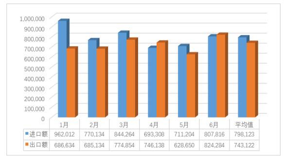 圖4 2016年1-6月日本電子信息產(chǎn)品進(jìn)出口額對(duì)比(單位:百萬(wàn)日元)
