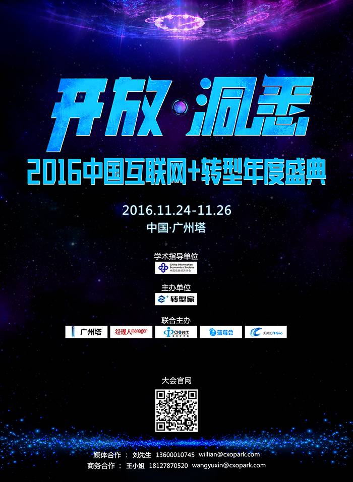 自去年11月在中國第一高塔——廣州塔成功舉辦聚焦企業(yè)轉(zhuǎn)型升級主題的千人峰會“2015中國互聯(lián)網(wǎng)+轉(zhuǎn)型峰會”后,2016年11月24日-26日,由轉(zhuǎn)型家攜手中國信息經(jīng)濟(jì)學(xué)會、廣州塔、《經(jīng)理人》雜志、CIO時代信息化學(xué)院、藍(lán)莓會、天英匯主辦的“2016中國互聯(lián)網(wǎng)+轉(zhuǎn)型年度盛典”將繼續(xù)在廣州塔隆重召開。