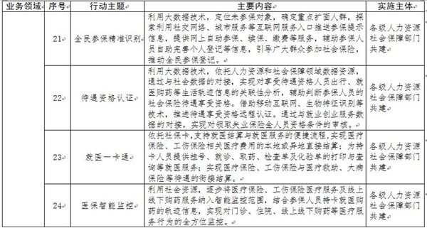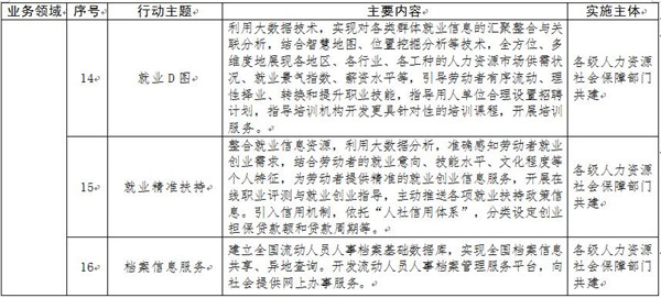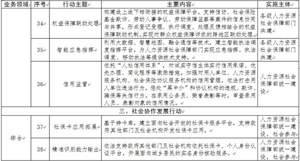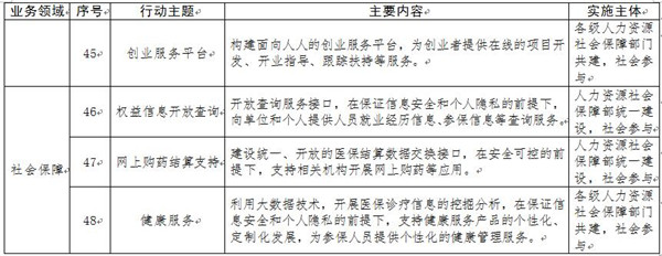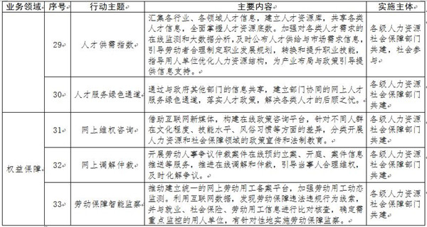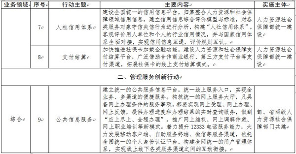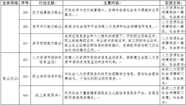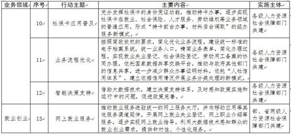 “互聯(lián)網(wǎng)+人社”2020行動(dòng)計(jì)劃由基礎(chǔ)能力提升、管理服務(wù)創(chuàng)新和社會(huì)協(xié)作發(fā)展三項(xiàng)行動(dòng)計(jì)劃組成,共包括48個(gè)行動(dòng)主題(見附件)。