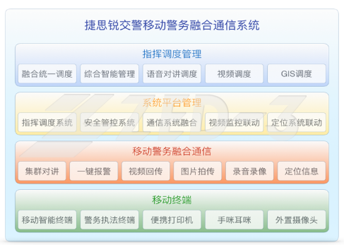 為了促進(jìn)移動警務(wù)的發(fā)展,北京捷思銳科技股份有限公司提出并設(shè)計了“交警移動警務(wù)融合通信解決方案”,采用行業(yè)專用移動警務(wù)通信終端,滿足一線出警時對多媒體通訊和多業(yè)務(wù)功能的需要,為現(xiàn)場執(zhí)法取證提供可靠的支撐保障,使出警更加快捷、直觀、可靠。