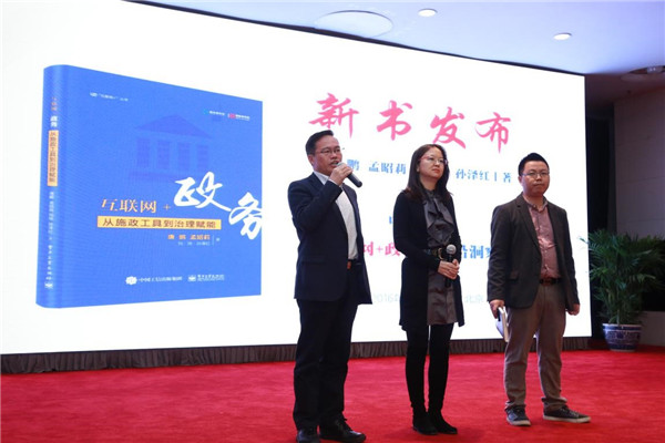 會(huì)議現(xiàn)場(chǎng)舉行了《互聯(lián)網(wǎng)+政務(wù):從施政工具到治理賦能》新書發(fā)布儀式,電子工業(yè)出版社總編輯劉九如、國(guó)脈研究院院長(zhǎng)唐鵬和騰訊研究院副院長(zhǎng)孟昭莉出席發(fā)布儀式。本書是國(guó)脈研究院和騰訊研究院在“互聯(lián)網(wǎng)+政務(wù)”領(lǐng)域的深度研究成果,對(duì)政務(wù)服務(wù)從PC互聯(lián)網(wǎng)到移動(dòng)互聯(lián)網(wǎng)再到人工智能時(shí)代的服務(wù)體驗(yàn)、模式、能力、價(jià)值等進(jìn)行了深入研究分析,是中國(guó)首部“互聯(lián)網(wǎng)+政務(wù)”前沿洞察讀本。