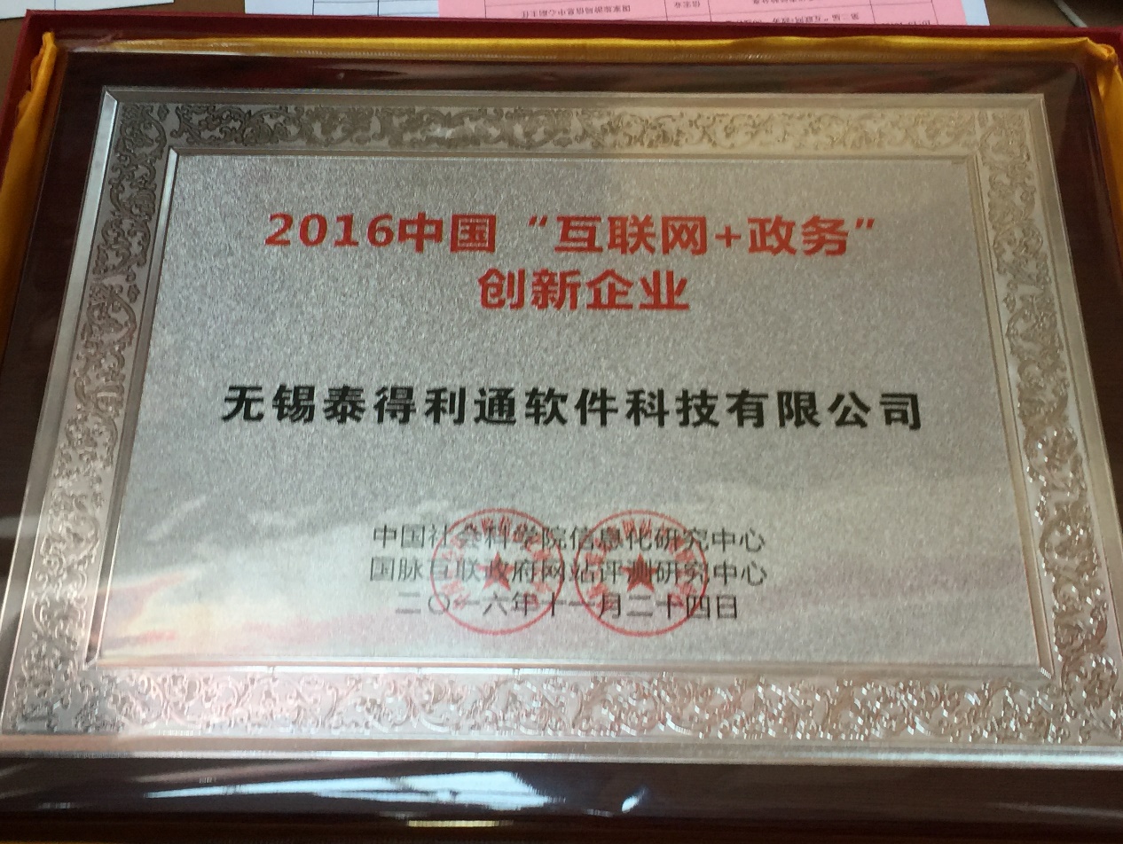 泰得利通榮獲2016中國"互聯網+政務"創(chuàng)新企業(yè)