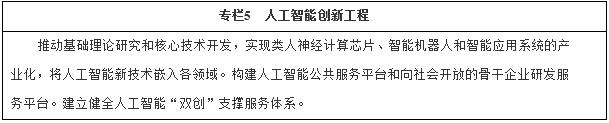 (五)發(fā)展人工智能。培育人工智能產(chǎn)業(yè)生態(tài),促進(jìn)人工智能在經(jīng)濟(jì)社會(huì)重點(diǎn)領(lǐng)域推廣應(yīng)用,打造國(guó)際領(lǐng)先的技術(shù)體系。