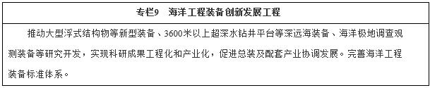 (五)增強(qiáng)海洋工程裝備國(guó)際競(jìng)爭(zhēng)力。推動(dòng)海洋工程裝備向深遠(yuǎn)海、極地海域發(fā)展和多元化發(fā)展,實(shí)現(xiàn)主力裝備結(jié)構(gòu)升級(jí),突破重點(diǎn)新型裝備,提升設(shè)計(jì)能力和配套系統(tǒng)水平,形成覆蓋科研開(kāi)發(fā)、總裝建造、設(shè)備供應(yīng)、技術(shù)服務(wù)的完整產(chǎn)業(yè)體系。