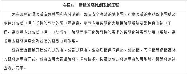 (二)推動(dòng)新能源產(chǎn)業(yè)發(fā)展。加快發(fā)展先進(jìn)核電、高效光電光熱、大型風(fēng)電、高效儲(chǔ)能、分布式能源等,加速提升新能源產(chǎn)品經(jīng)濟(jì)性,加快構(gòu)建適應(yīng)新能源高比例發(fā)展的電力體制機(jī)制、新型電網(wǎng)和創(chuàng)新支撐體系,促進(jìn)多能互補(bǔ)和協(xié)同優(yōu)化,引領(lǐng)能源生產(chǎn)與消費(fèi)革命。到2020年,核電、風(fēng)電、太陽(yáng)能、生物質(zhì)能等占能源消費(fèi)總量比重達(dá)到8%以上,產(chǎn)業(yè)產(chǎn)值規(guī)模超過(guò)1.5萬(wàn)億元,打造世界領(lǐng)先的新能源產(chǎn)業(yè)。