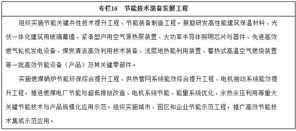 大力提升高效節(jié)能裝備技術(shù)及應(yīng)用水平。鼓勵(lì)研發(fā)高效節(jié)能設(shè)備(產(chǎn)品)及關(guān)鍵零部件,加大示范推廣力度,加速推動(dòng)降低綜合成本。制修訂強(qiáng)制性能效和能耗限額標(biāo)準(zhǔn),加快節(jié)能科技成果轉(zhuǎn)化應(yīng)用。發(fā)布節(jié)能產(chǎn)品和技術(shù)推廣目錄,完善節(jié)能產(chǎn)品政府采購(gòu)政策,推動(dòng)提高節(jié)能產(chǎn)品市場(chǎng)占有率。完善能效標(biāo)識(shí)制度和節(jié)能產(chǎn)品認(rèn)證制度,在工業(yè)、建筑、交通和消費(fèi)品等領(lǐng)域?qū)嵤┠苄ьI(lǐng)跑者制度,推動(dòng)用能企業(yè)和產(chǎn)品制造商跨越式提高能效。