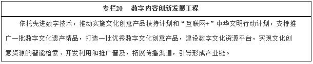 以數(shù)字技術(shù)和先進(jìn)理念推動(dòng)文化創(chuàng)意與創(chuàng)新設(shè)計(jì)等產(chǎn)業(yè)加快發(fā)展,促進(jìn)文化科技深度融合、相關(guān)產(chǎn)業(yè)相互滲透。到2020年,形成文化引領(lǐng)、技術(shù)先進(jìn)、鏈條完整的數(shù)字創(chuàng)意產(chǎn)業(yè)發(fā)展格局,相關(guān)行業(yè)產(chǎn)值規(guī)模達(dá)到8萬(wàn)億元。