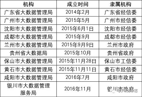 表2 地方大數(shù)據(jù)管理機(jī)構(gòu)成立情況