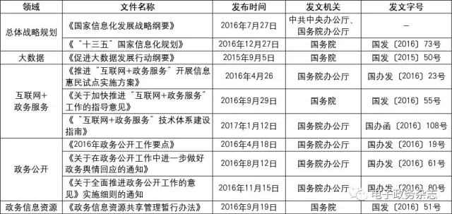 表3 近一年來(lái)國(guó)家出臺(tái)的電子政務(wù)相關(guān)政策文件