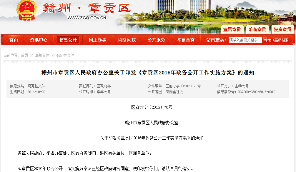 章貢區(qū)政府領(lǐng)導(dǎo)高度重視政務(wù)公開工作,印發(fā)了《章貢區(qū)2016年政務(wù)公開工作實(shí)施方案》,依托政府門戶網(wǎng)站、章貢手機(jī)報(bào)、微信公眾號等平臺,積極推進(jìn)市場監(jiān)管、經(jīng)濟(jì)社會政策、政府投資重大建設(shè)項(xiàng)目、公共資源配置、減稅降費(fèi)、國有企業(yè)運(yùn)營監(jiān)管等政務(wù)信息公開,推動政府決策公開、政策執(zhí)行和落實(shí)情況公開、預(yù)決算公開,主動做好政策解讀,積極回應(yīng)社會關(guān)切,增強(qiáng)公開實(shí)效,提升政府的透明度和公信力。