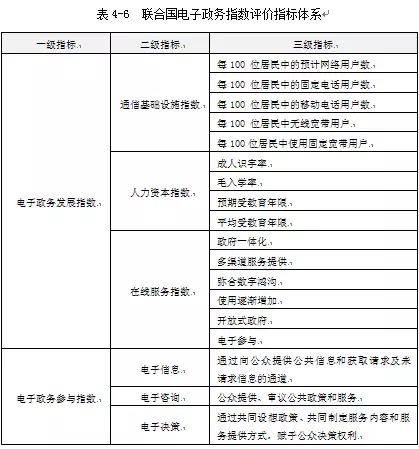 通過聯合國電子政務指數評價指標體系可以看出,在通信基礎設施、人力資本、在線服務三個方面涉及的內容已存在PC互聯網時代的路徑依賴,對于在“手機思維”籠罩的移動互聯網環(huán)境下,特別對于信息基礎設施發(fā)展不均衡的中國而言,這套評價指標體系已存在某些無法覆蓋的“盲區(qū)”(見表4-6)。首先,“通信基礎設施”所測評的“每100位居民中無線寬帶用戶”,這里應指的是無線寬帶的入戶率,而對于公共Wi-Fi迅速普及的中國而言,在辦公樓、商業(yè)區(qū)、機場等區(qū)域的移動上網已經成為潮流,因此該項指標不足以完整體現通信基礎設施的能力水平。