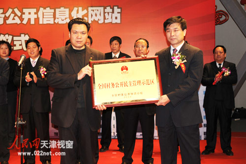 圖為東麗區(qū)村務(wù)公開信息化網(wǎng)站開通儀式,日前(2月21日)在區(qū)廣電局演播大廳舉行